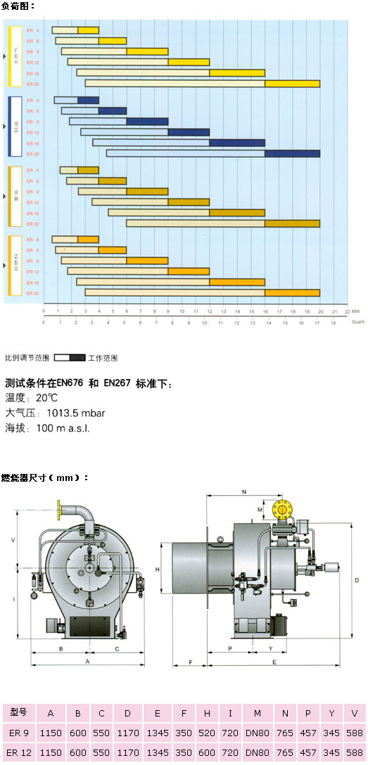 工业用低NOx燃油,燃气和双燃料两用燃烧器ER9-12